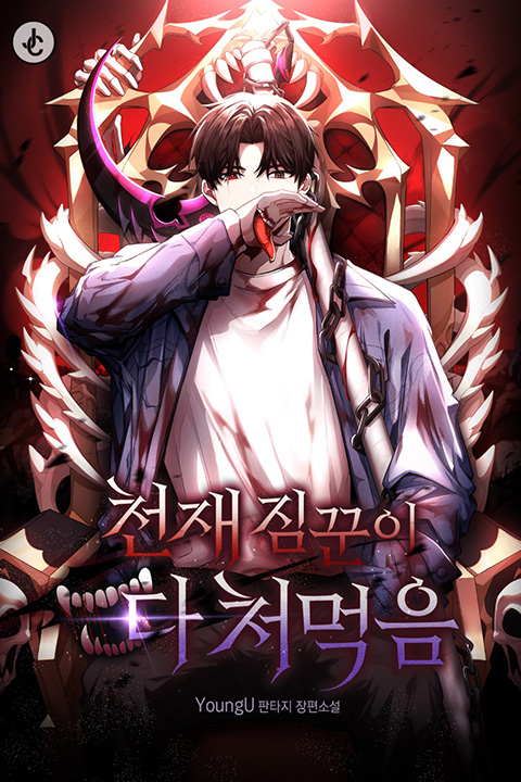 드리머라는 빌런 조직에 의해 주인공의 동료들은 하루만에 살해당했고, 주인공도 죽을 위기에 놓였으나, 기적적으로 과거로 회귀하게 됩니다. 하지만 그 시기는 하필이면 5년 전, 온갖 푸대접을 받으며 짐꾼으로 살아가던 시절입니다. 주인공은 그때의 기억을 되살리며 최대한 빨리 성장할 방법을 찾고, 최대한 빨리 드리머를 막아설 방법을 찾습니다. 그 방법이란 '두 번째 입'이라는 이름을 가진 능력을 통해 온갖 몬스터의 마석을 '포식'하는 것입니다. 그래서 '천재 짐꾼이 다 처먹음'이라는 제목을 지었습니다.